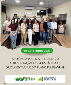 Na manhã do dia 29 de setembro de 2025, a Câmara Municipal de Pombos realizou, em seu plenário, uma Audiência Pública para apresentação, análise e discussão do Plano Plurianual (PPA) 2026–2029 e da Lei Orçamentária Anual (LOA) para o exercício de 2026.